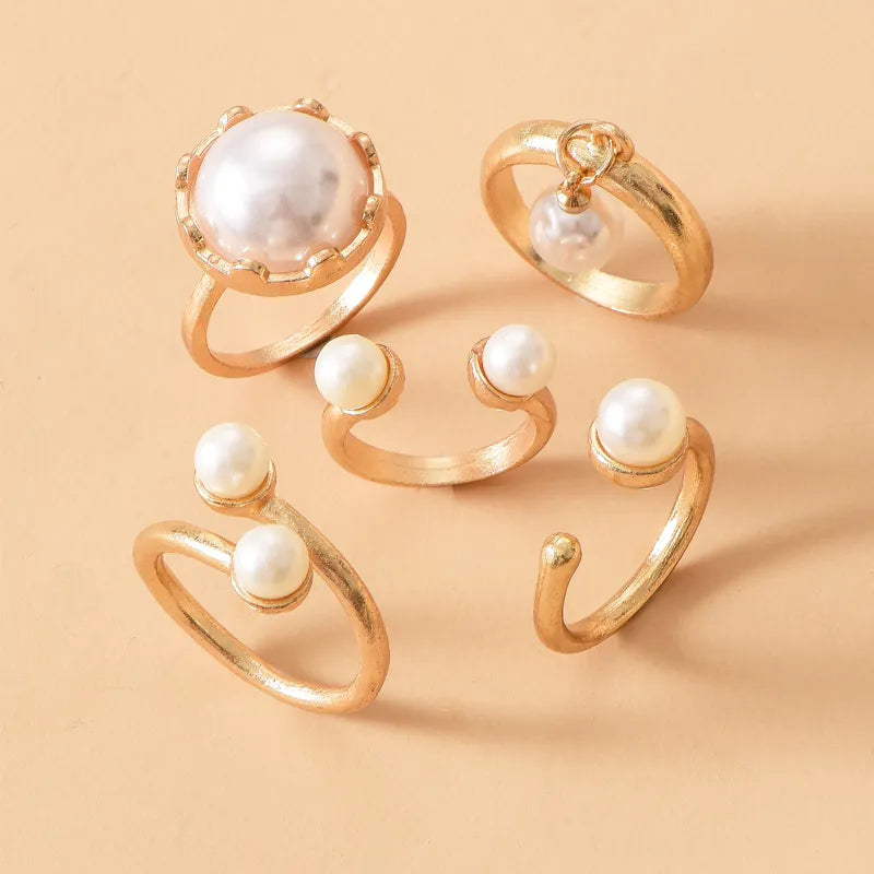 Pearl & Gold-plated 5pc ring set